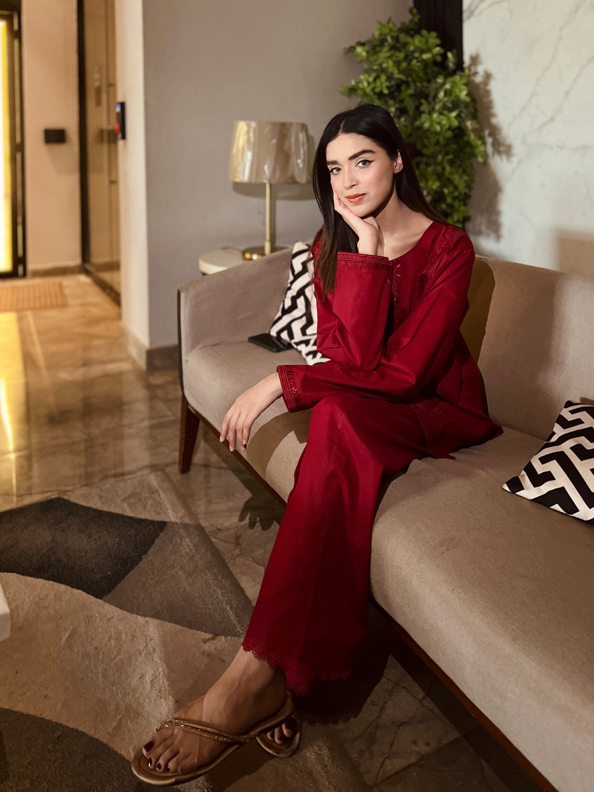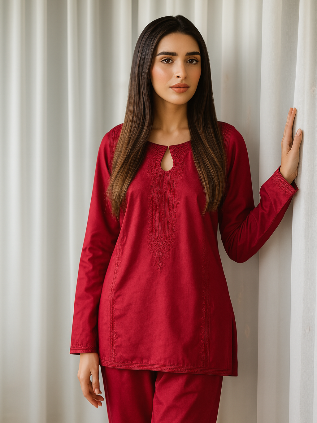 Refresh your everyday wardrobe with Mireej’s Berry Red 2-Piece Embroidered Coord Set, thoughtfully designed for the modern Pakistani woman who values comfort and style.