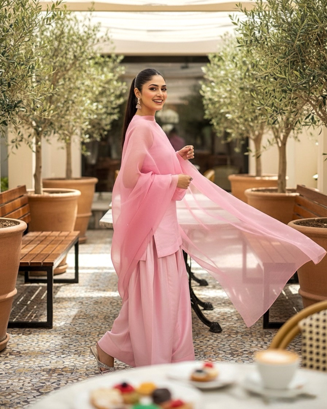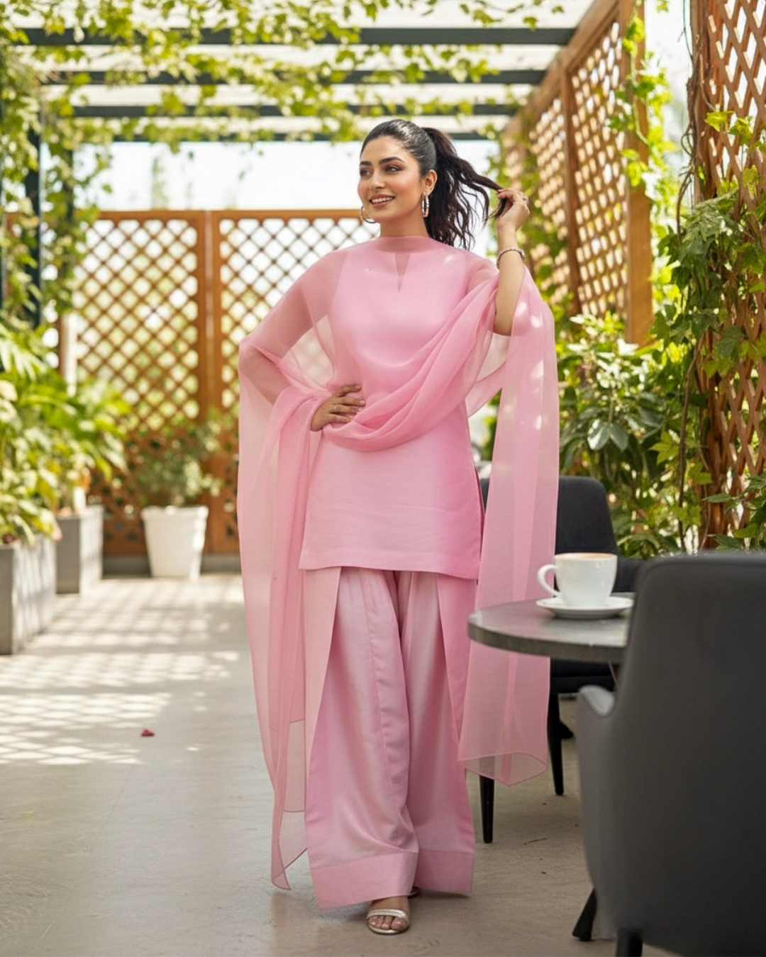 - Dupatta: Sheer Organza or Fine Chiffon