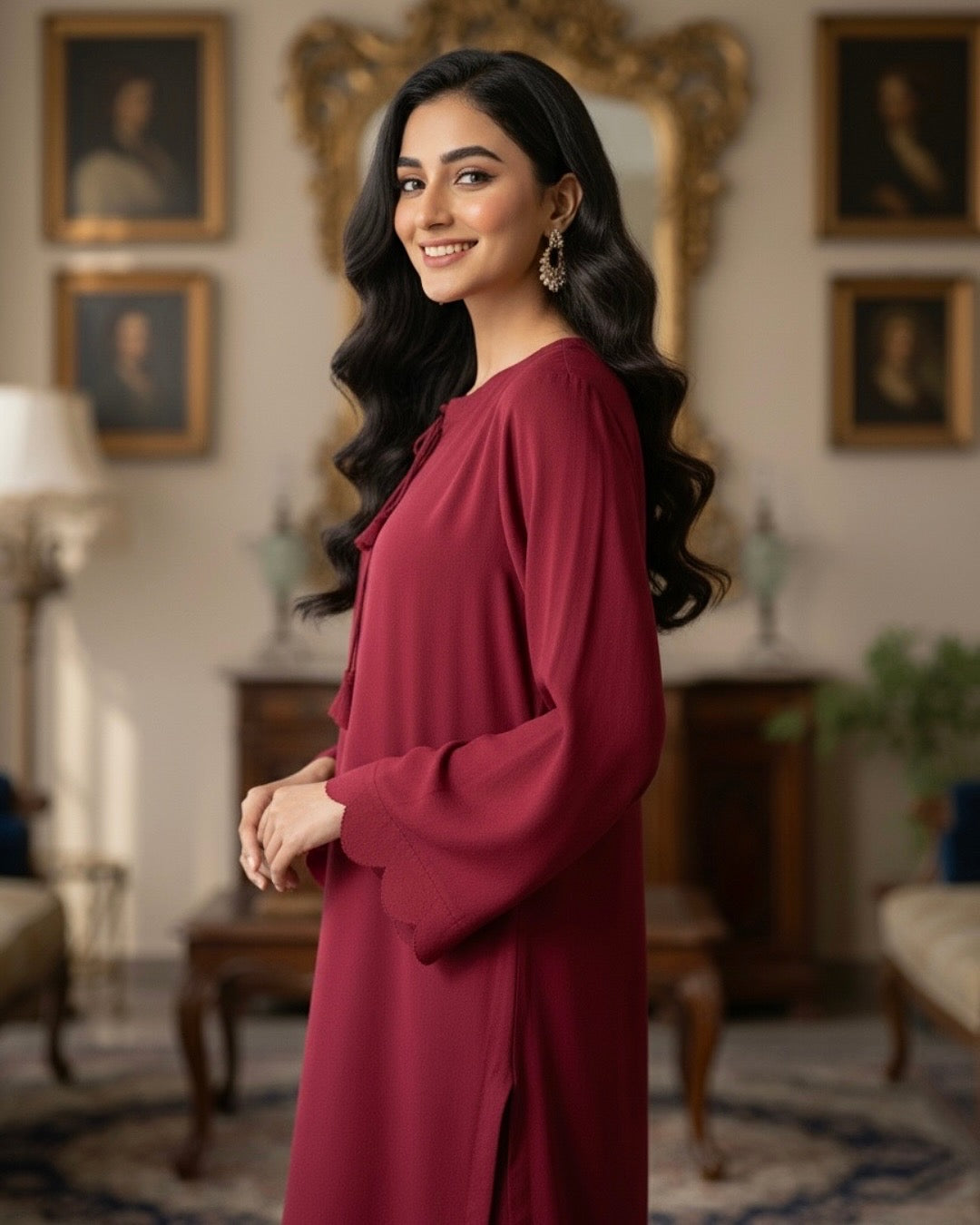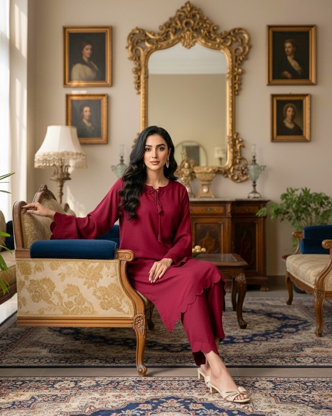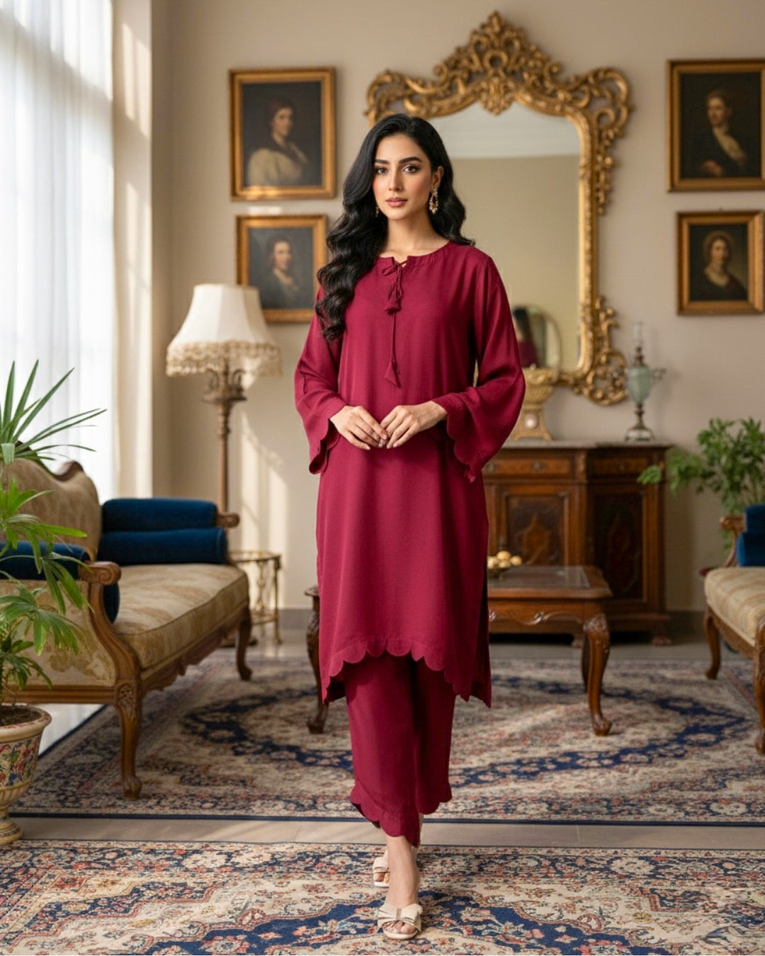 Understated charm and graceful flow define this timeless red ensemble. Designed for effortless sophistication, this two-piece set blends tradition with contemporary ease. Ideal for casual gatherings or serene evenings at home.
